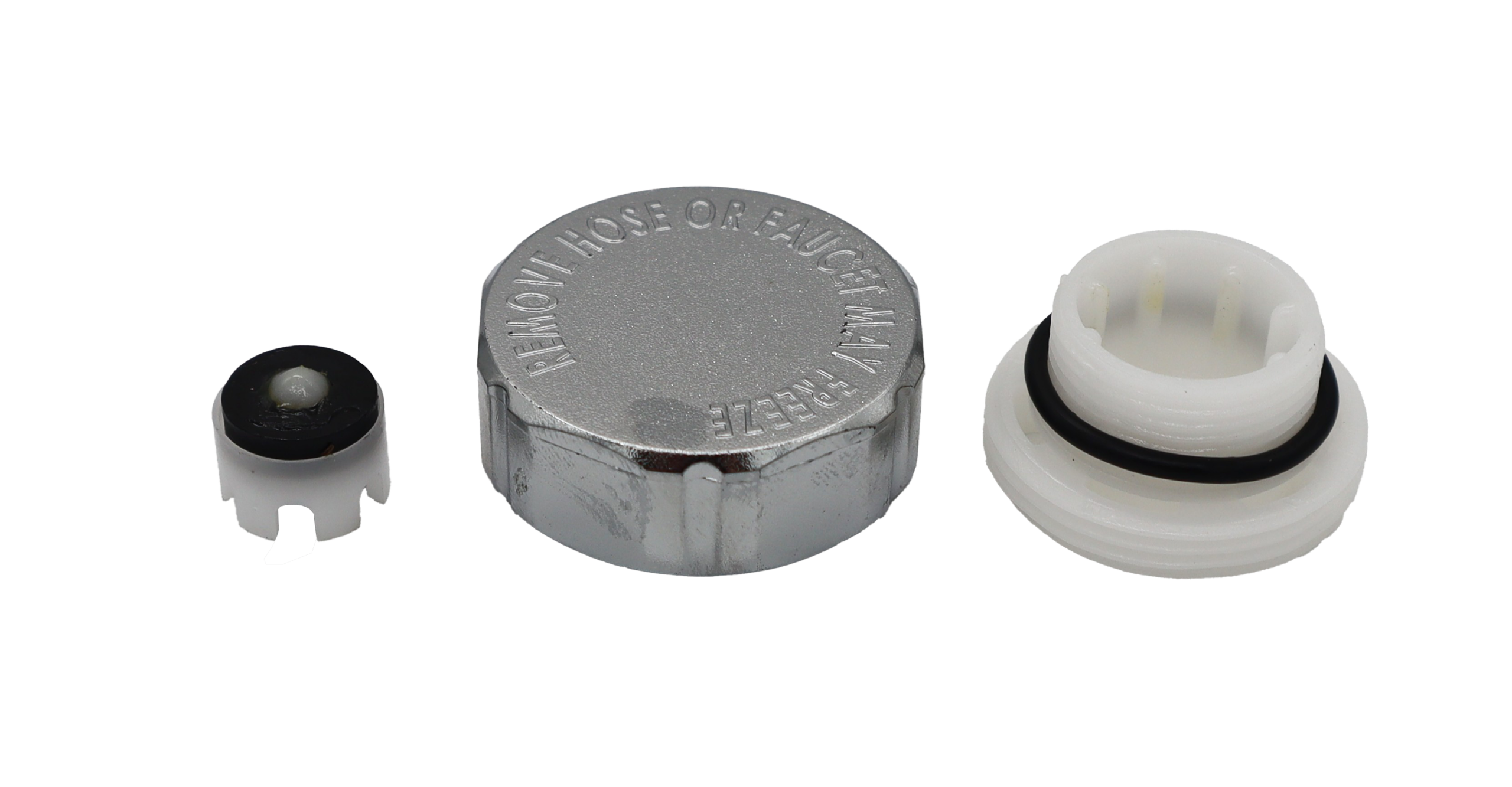 - A chrome-plated plastic cap designed to match the finish of the original valve while protecting internal parts from weather.