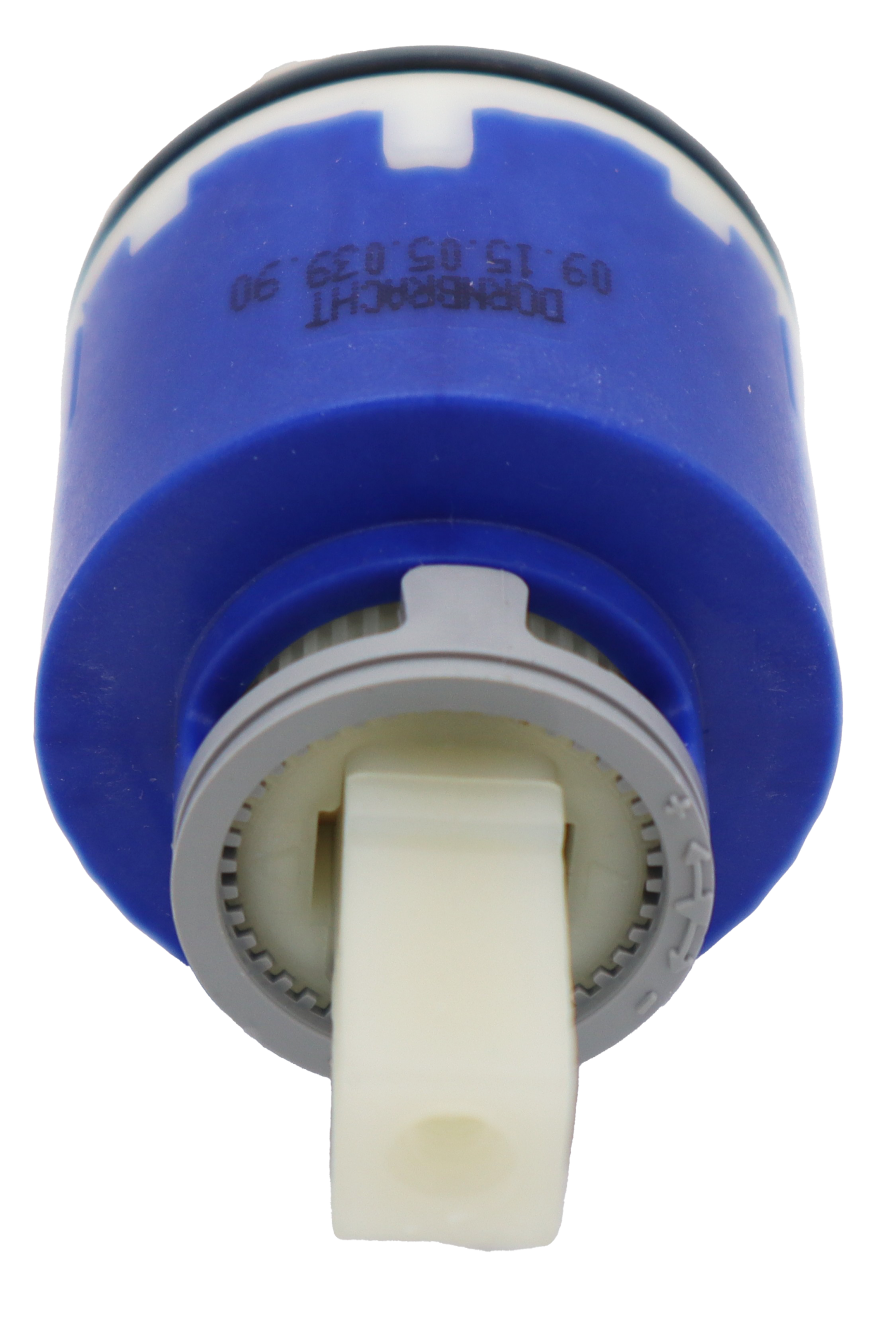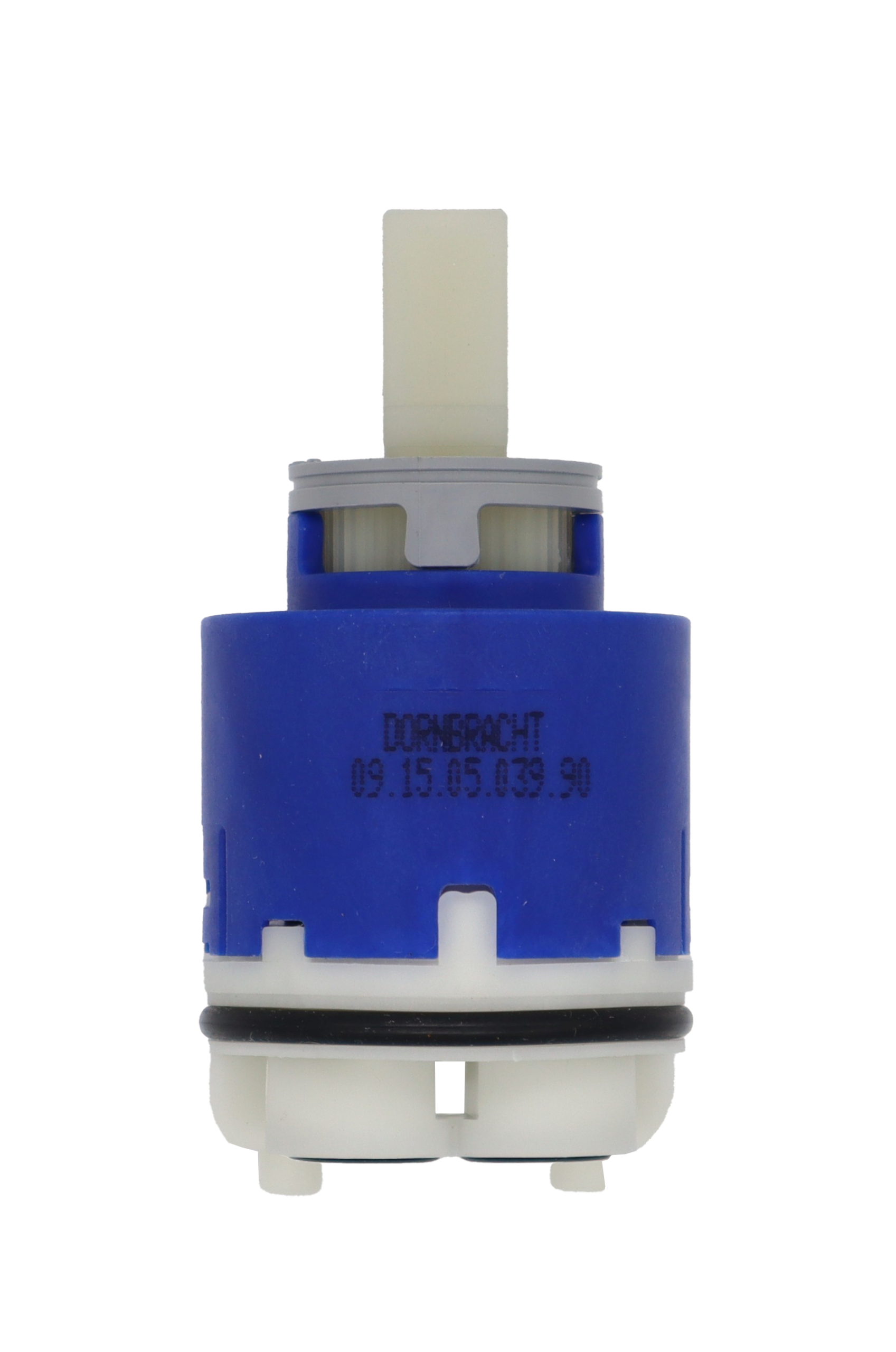The Dornbracht 9015050390090 is a single-handle ceramic faucet cartridge, used as a replacement part for various Dornbracht bath and shower faucets.