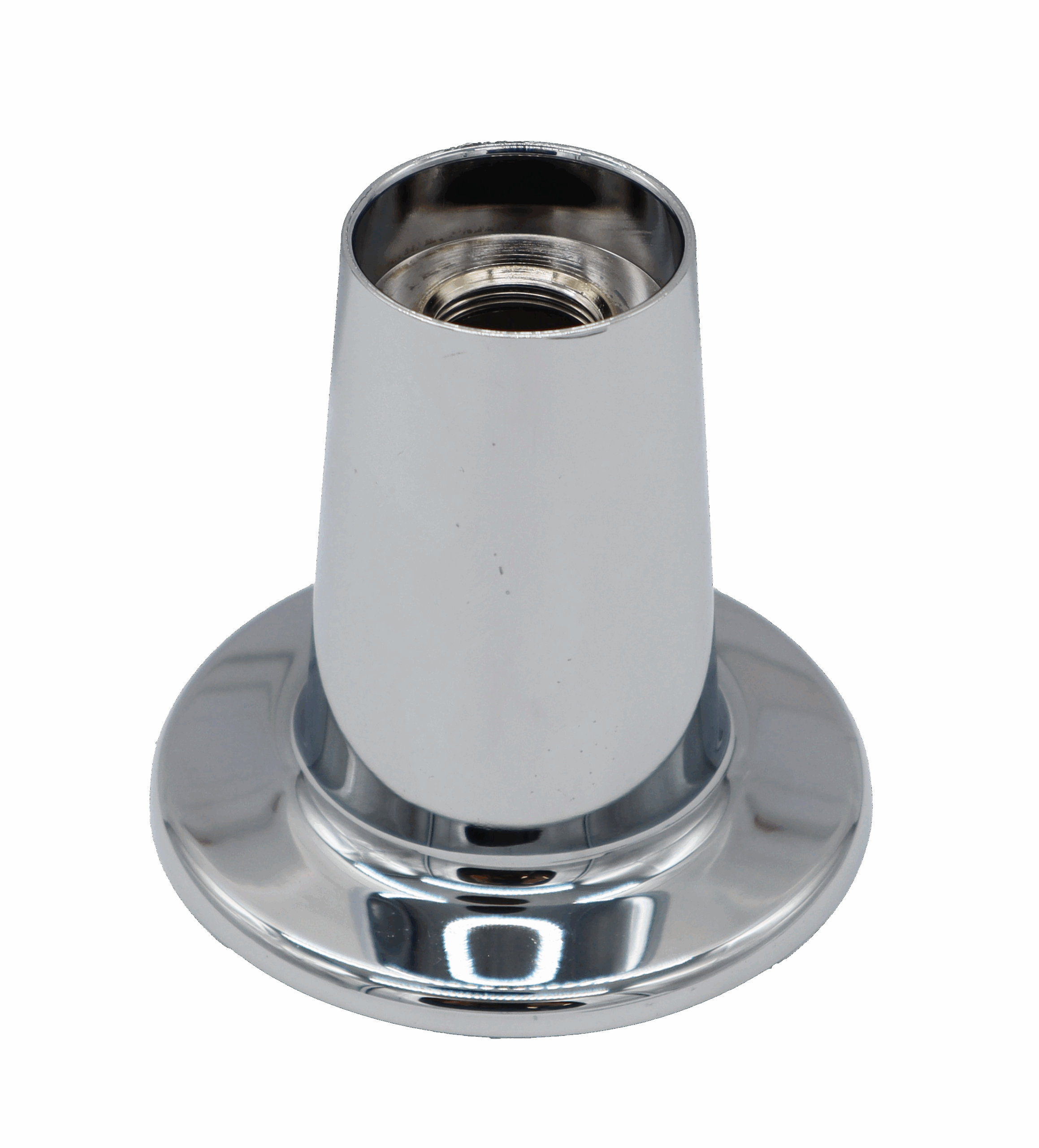 Chrome Plated Threaded escutcheon for tub and shower control. Designed for use with Gerber tub and shower control handle trim sets.
