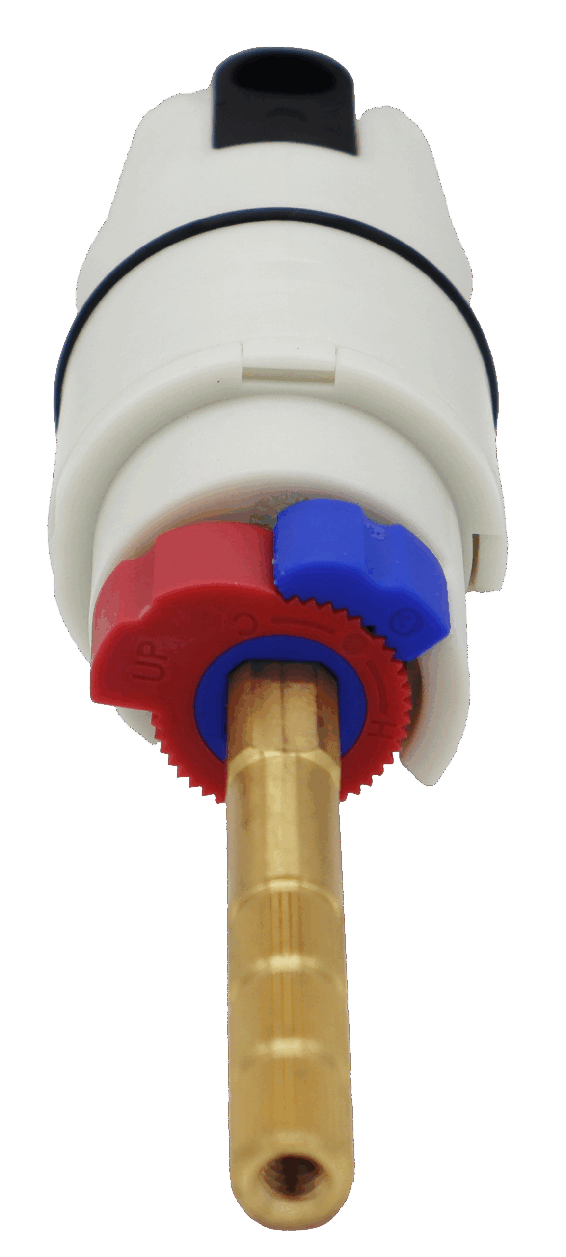 - Washerless cartridge with a balancing spool.